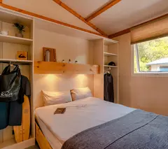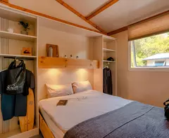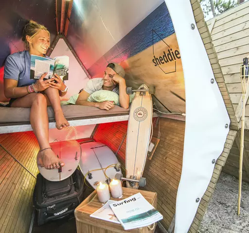 Die Bungalows sind eine super Alternative für alle, die ein Bett sowie eine feste Unterkunft möchten, ohne dabei auf die Surfcamp-Atmosphäre verzichten zu wollen. Es gibt 2 Stockbetten und genug Platz für euer Gepäck. Auf der Veranda könnt ihr abends gechillt zusammensitzen oder der Mittagshitze entfliehen.