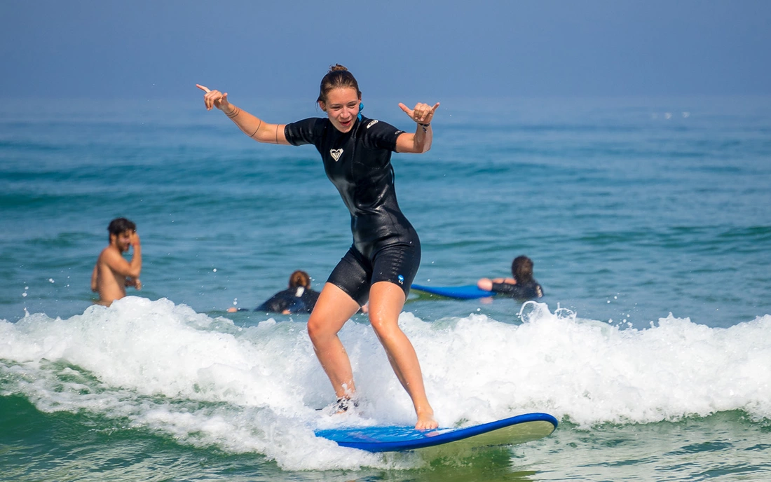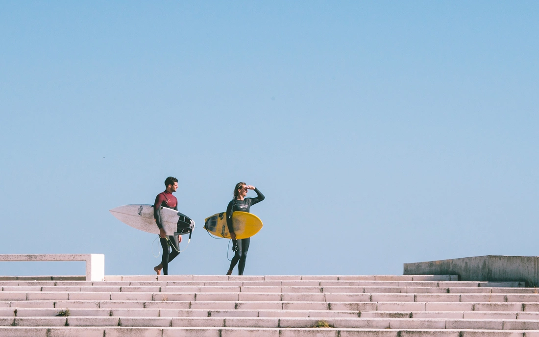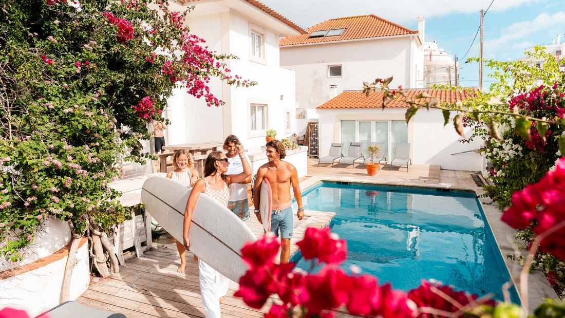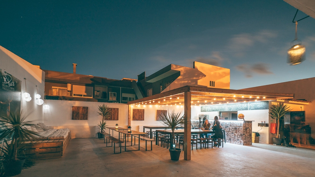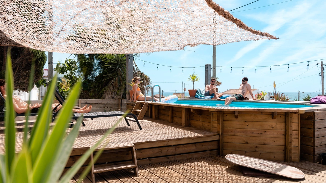 Just 30 minutes from Lisbon, the Beachfront Surf Camp Caparica offers everything you need for a surf holiday by the sea. Located directly at the beach of Fonte da Telha, you can step from your room into the sand – and into the waves. Enjoy a freshly renovated camp with modern ensuite rooms, a sea-view terrace, a pool, and daily breakfast. The surf lessons (beginner to advanced), yoga sessions, and even cross training are led by certified instructors and included in your stay. A perfect mix of surf, fun, and relaxation – ideal for solo travelers, friends, and couples.