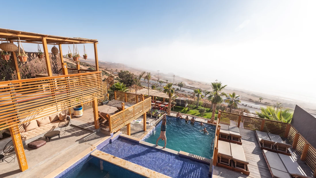 The surf lodge boasts a huge sun terrace, comfortable sun chairs and an amazing rooftop pool. All the rooms have a private bathroom and come with comfortable furniture.