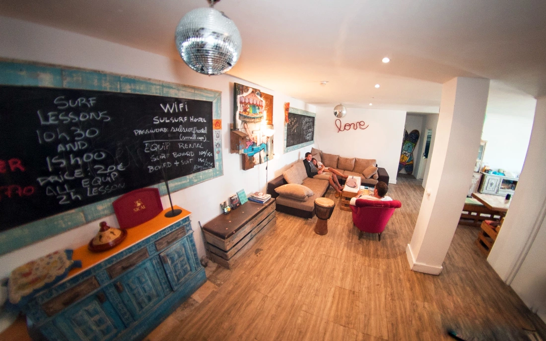 Unser Beachfront Surfcamp Caparica liegt unmittelbar am Strand und du hast die Möglichkeit, in Doppel-, Dreier- und Mehrbettzimmer unterzukommen. Das Mehrbettzimmer hat Platz für sechs Personen. Der Gemeinschaftsbereich lässt genügend Platz, um gemeinsam zu essen, zu chillen oder um von deinen Surfabenteuern zu erzählen. Der Hausspot, Fonte de Telha, kann schon vom Frühstück aus gecheckt werden und garantiert dir leere Wellen. Dieser Abschnitt der Costa da Caparica ist eine versteckte, verträumte Bucht, die zum Entspannen einlädt. Falls der Hausspot mal nicht laufen sollte, gibt es zahlreiche Alternativen, die Küste rauf- und runterwärts zu erkunden, wie beispielsweise im Norden Ericeira und Peniche.