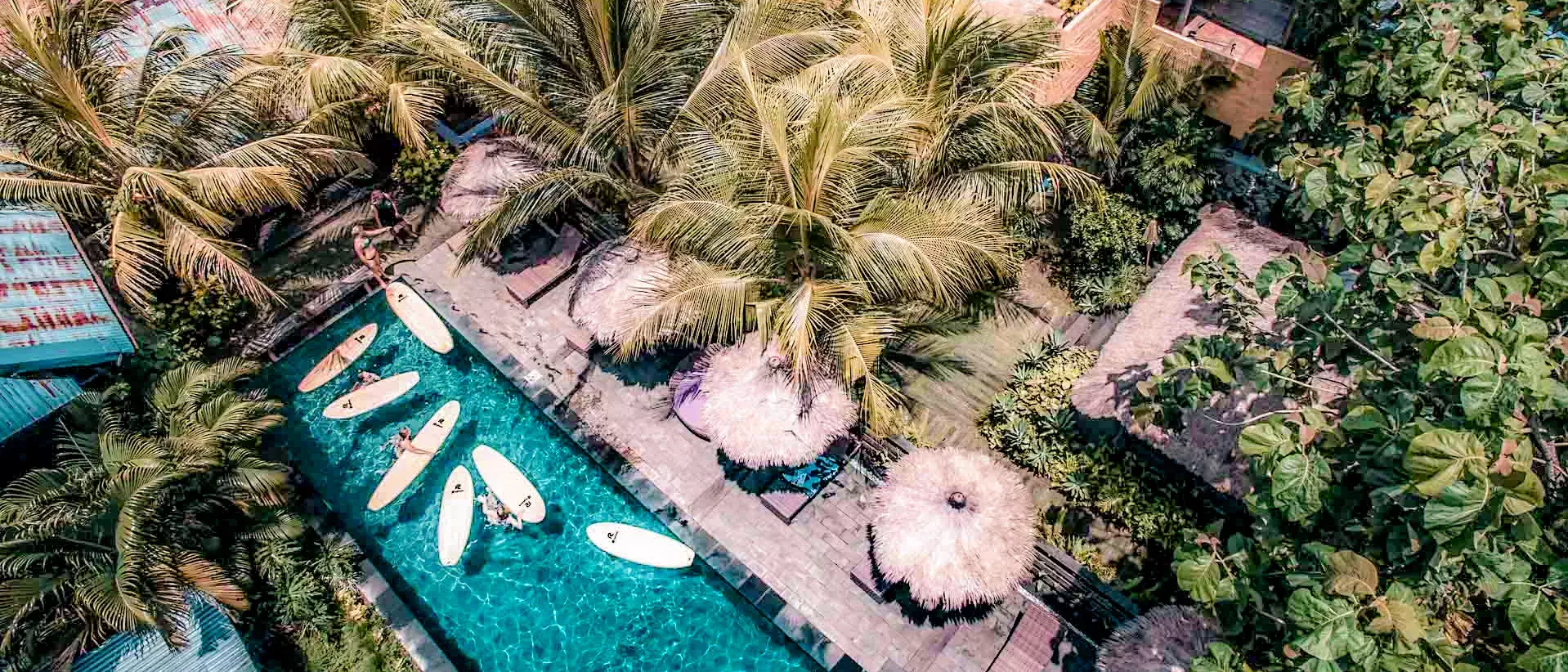 Auch für den kleinen Geldbeutel finden sich auf Bali wunderschöne Unterkünfte - ohne Verzicht auf Komfort. In diesem Surfcamp wohnst du direkt am Strand oder in Strandnähe, kannst nach der Surf Session am Pool abhängen und bekommst einen traumhaften Urlaub im Paradies zum besten Preis-Leistungs-Verhältnis.