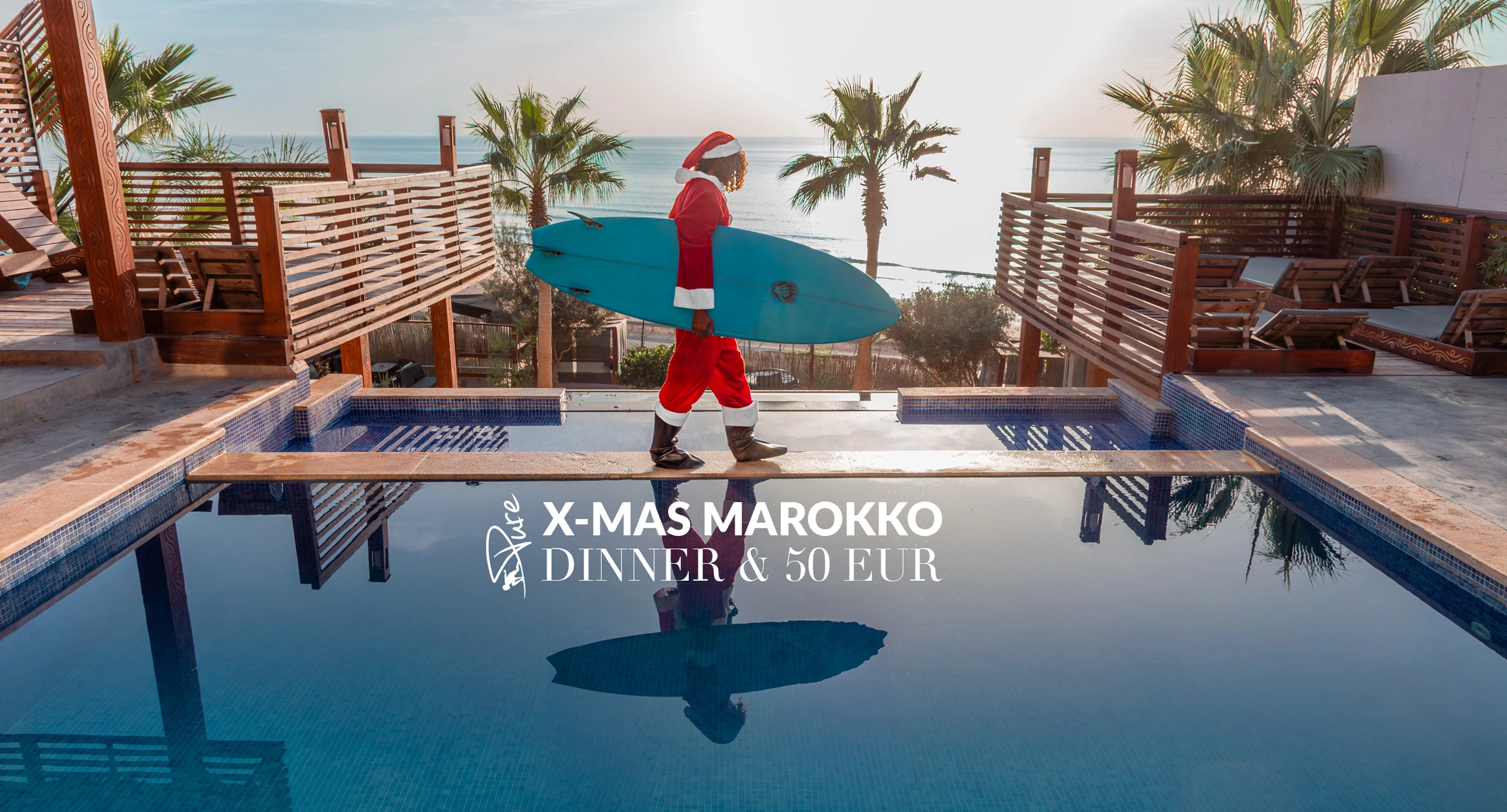 Verbringe die Advents- und Weihnachtszeit im sonnenverwöhnten Marokko. Chille am Pool, surfe Winterwellen und genieße gleichzeitig festliche Weihnachts-Vibes mit festlichen Dinnern.