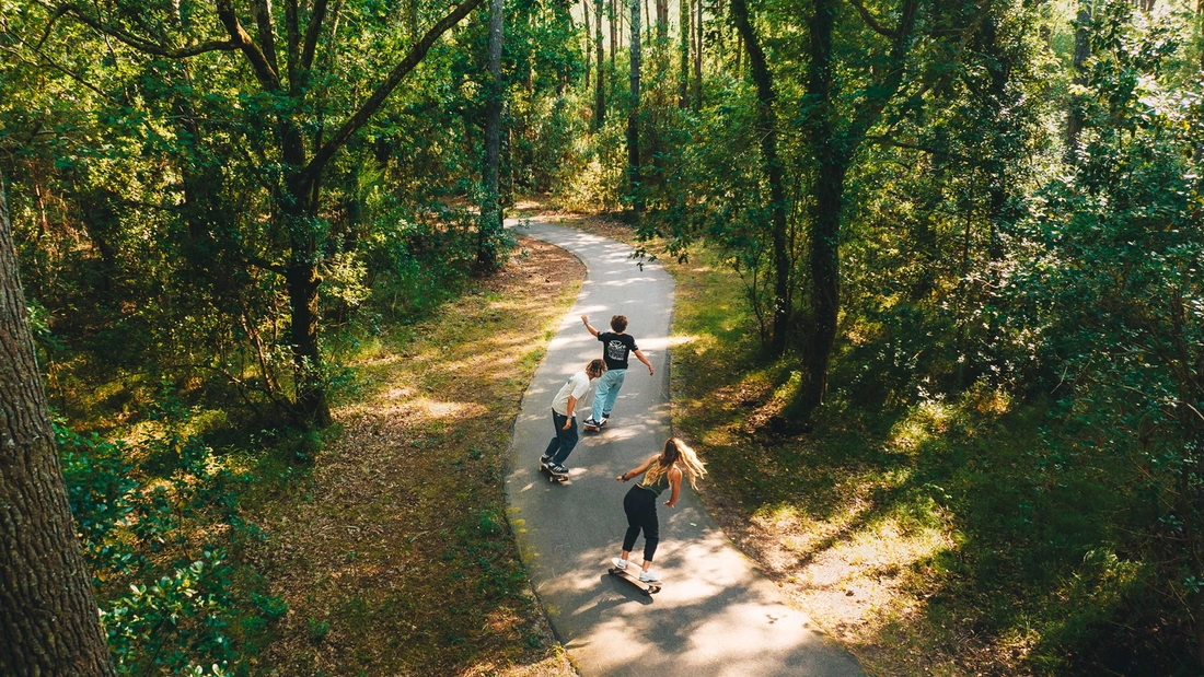 Der Campingplatz liegt inmitten eines riesigen, wunderschönen Pinienwaldes, der von Wanderwegen durchzogen ist - perfekt zum Joggen und Spazieren. Am Surfstrand mündet ein kleiner Fluss ins Meer, den ihr auf dem Weg zum Surfstrand durchqueren müsst. Erwachsene haben dabei aber immer Bodenkontakt mit den Füßen. Dieses kleine, tägliche Abenteuer führt euch zu einem fantastischen Familienstrand. Vor euch brechen die Wellen des Atlantiks und hinter euch befindet sich die Lagune, die der Fluss bildet - das warme Süßwasser ist ideal, um den ganzen Tag darin zu plantschen.