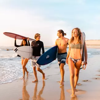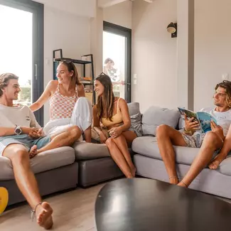 Die Bungalows sind eine super Alternative für alle, die ein Bett sowie eine feste Unterkunft möchten, ohne dabei auf die Surfcamp-Atmosphäre verzichten zu wollen. Es gibt 2 Stockbetten und genug Platz für euer Gepäck. Auf der Veranda könnt ihr abends gechillt zusammensitzen oder der Mittagshitze entfliehen.