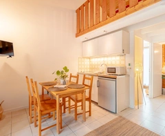 Rund um den Strandzugang sammeln sich Bars, Restaurants, kleine Shops und Eisstände. Abends wird der Bereich automatisch zum Treffpunkt: Leute sitzen draußen, Musik läuft, überall bekannte Gesichter vom Strand. Du läufst ein paar Meter weiter, bleibst irgendwo hängen – und plötzlich ist die halbe Camp-Crew da. Alles ist fußläufig, alles fühlt sich easy an.