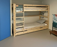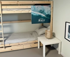 Unsere Zimmer in Vieux Boucau sind frisch renoviert, hell und unkompliziert – genau richtig für einen Surftrip, bei dem Gemeinschaft und gute Stimmung im Mittelpunkt stehen. In jedem Raum gibt es 2 hochwertige Holz-Stockbetten. Dabei kannst du das Zimmer als 4er Mehrbett-, als Doppel- oder als exklusives 3er Zimmer buchen – je nachdem, ob du alleine oder mit Freunden anreist oder auf dein Budget achten möchtest.